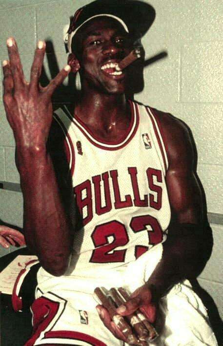 乔丹抽雪茄这事就像学霸喜欢睡懒觉,虽然他偷懒了一会,但是他的天赋以及人后的加倍努力让他可以无视这些,打出高效的表现。