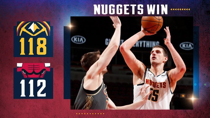 全明星周末前四连客的掘金东征来到了芝加哥的联合中心球馆,不过多达六人的缺阵让掘金整体实力大受影响,而主场作战的公牛则期待在即将完成全明星首秀拉文的带领下,继续保持对季后赛的冲击。比赛开始约老师在内线不可阻挡,进可攻退可守,掘金也多点开花率先占据主动,而公牛则在拉文的带领下连续外线发炮紧咬比分,不过公牛在这场进攻大战中迟迟找不到在防守端解决约老师的办法,也带着7分的劣势进入中场休息。半场回来,双方继续这场对攻大战,公牛明显加快进攻节奏意图冲垮残阵的掘金,分差也是被不断地蚕食直到反超,而掘金体能的明显下降,也把比赛的悬念留到了最后,关键时刻,约老师进攻端继续无解,再次上演暴力砸框,穆雷则反击三分冷血命中,而拉文的走步违例也葬送了最后的追分希望。最终,掘金客场以118-112力擒公牛,喜迎两连胜。