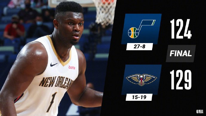 NBA常规赛爵士对阵鹈鹕,开场后爵士仍旧主要在外线尝试三分,但开始他们命中率并不高,鹈鹕连续冲入内线得分,首节鹈鹕取得略微领先。第二节回来克拉克森就帮助爵士完成反超,爵士外线也逐渐找到手感,不过鹈鹕仍旧紧追不舍,上半场爵士64-59反超比分。下半场刚回来锡安就在内线强势爆发接连砍分,随后鹈鹕打出高潮再次取得领先并且建立起两位数优势,爵士虽然最后一度将分差追到只差1分,但锡安关键罚球命中,最终鹈鹕129-124击败爵士结束2连败。