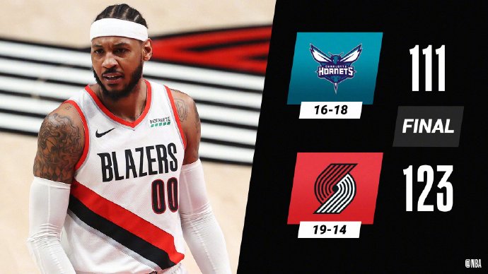 NBA常规赛,开拓者今日迎战黄蜂,前者近来状态不佳,一波四连败后排在西部第六位,而后者上场比赛则是逆转绝杀了国王,目前排在东部第八位,本场海沃德、泽勒和格拉汉姆等人缺战。比赛上来两队便陷入拉锯战,场上比分交替领先,首节中后段开拓者命中率开始下降,黄蜂趁势一波11-0的小高潮将分差拉开到两位数,之后的比赛开拓者利用火热的外线手感追分,并在半场结束时成功追至59-59平。易边再战,开拓者完全占据了场上的主动,分差也是达到了两位数,全场他们共投进打破队史记录的24记三分,黄蜂没有再获得任何机会,最终开拓者123-111轻取黄蜂,止住四连败。