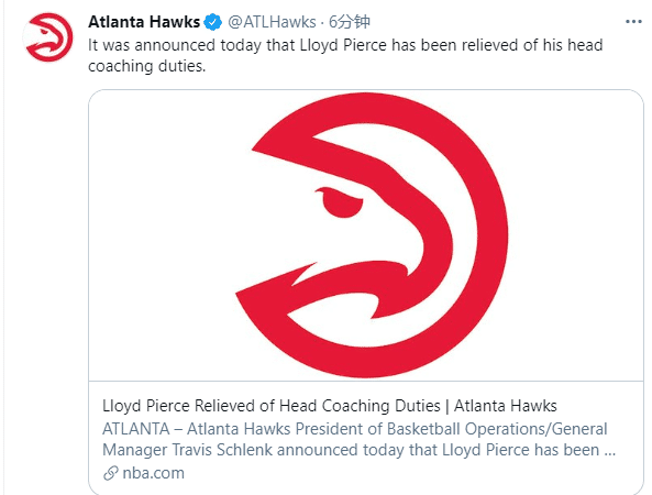 官宣!NBA又一主帅遭解雇,老鹰总经理声明:希望改变能带来更好的战绩