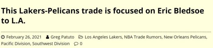可就是这么优秀的球员,美媒《nbaanalysis》觉得还不能搭档詹姆斯浓眉哥卫冕总冠军,而是建议湖人用他单换来鹈鹕后卫布莱索。