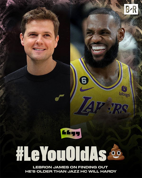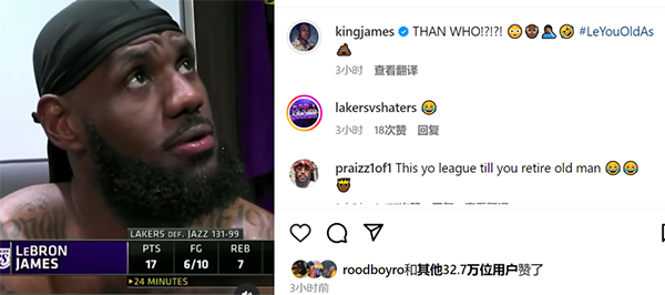可能是觉得这番采访很有趣,詹姆斯把视频也转发到自己的社媒上,并配文写道:“比谁(更老)?!”资料显示,爵士主帅威尔-哈迪出生于1988年1月,詹姆斯出生于1984年12月。