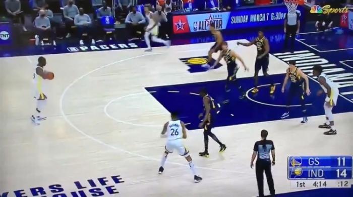 一般的球队在面对勇士时习惯使用BOX-1(一盯四联)的策略,科尔在赛前也透漏“预计步行者会打出大量的Box-1(一盯四联)战术,他们有两个大个子守住内线,那种战术会非常有用,但我们比上次交手时做好了更多的准备来处理这个问题”但是没想到的是,步行者不仅仅使用BOX-1,甚至全队的防守都盯着库里。在一次进攻中,库里一路运球穿过了霍勒迪、小萨、布罗格登、特纳的围追堵截,并在禁区内将球甩给了外线完全没人理会的追梦;之后库里再借怀斯曼挡拆、追梦将球传到、库里晃起这个回合他遇上的第五位防守人麦克德莫特,调整了一下之后命中了他本场唯一的三分球。
