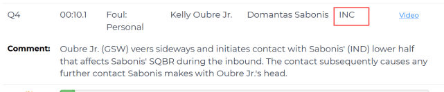 比赛最后10.1秒,步行者的布罗格登发边线球,乌布雷在拼抢位置时倒地和小萨发生身体接触,小萨也随之倒地,这一球被勇士的格林抢断。裁判报告认定,乌布雷倒地时,影响了小萨的身体平衡,让他接不到球。这是一次防守犯规,这次身体接触也导致后来小萨撞到乌布雷的头部。