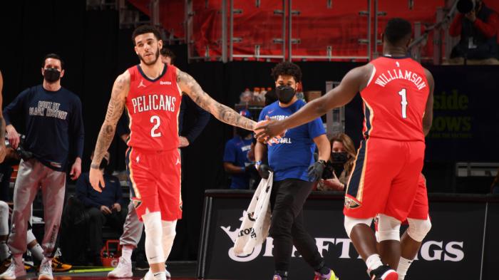 首节比赛,锡安禁区吃饼暴扣,持球突破过掉字母哥上篮得分,单节多次暴扣贡献11分;锡安犹如坦克一般疯狂肆虐禁区,郎佐-鲍尔则是扮演外线射手,两人首节合砍20分大战雄鹿;到了第二节,锡安继续攻击篮筐,防守端钉板大帽迪文琴佐,上半场打得十分高效。