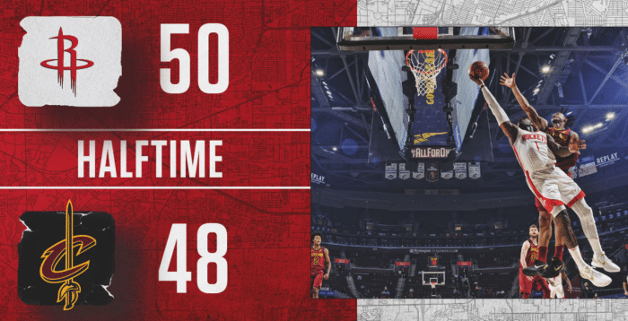 第二节,火箭凭借替补阵容缩小分差,戈登连突带投单节独得11分,中场结束前,沃尔、奥拉迪波、豪斯、泰特先后得分帮助球队完成反超!半场战罢,火箭50比48领先2分。