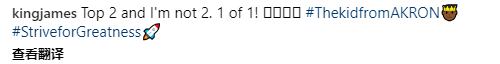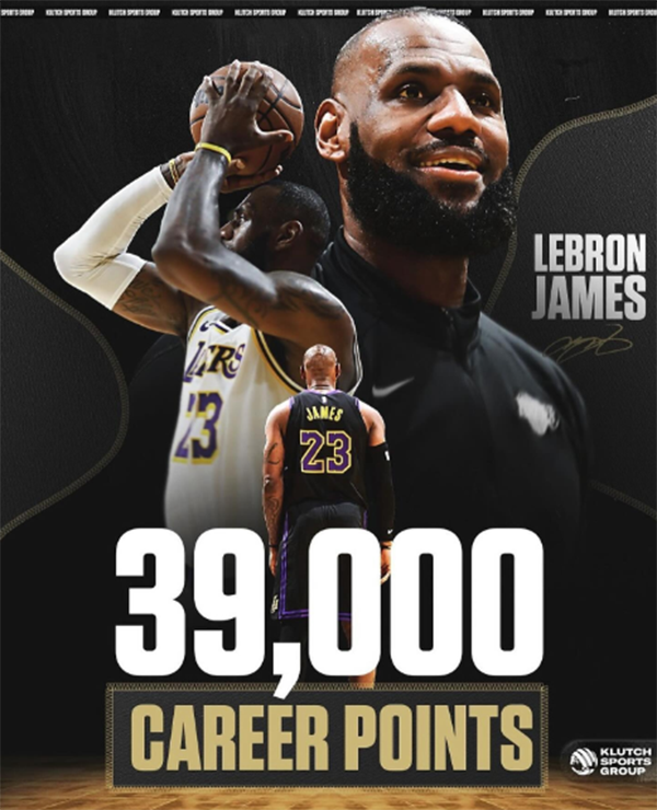 不久前,詹姆斯晒海报祝贺自己达成39000分,配文写道:历史前二但我不是第二,我是独一无二!#来自阿克伦的孩子#追逐伟大。