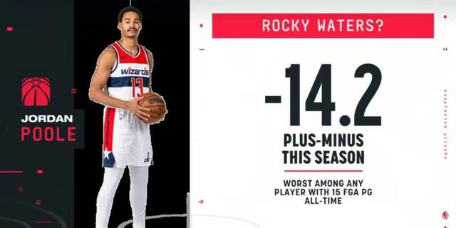 来源:24直播网11-22 15:5324直播网11月22日,来自美媒的统计,本赛季奇才球员乔丹·普尔的场均正负值低至-14.2。这一数字创下了NBA有史以来,场均出手次数超过15次球员的最差纪录。很显然,对于一名4年1.4亿美元的球员来说,这是不可接受的表现。在这样的情况下,奇才已经动了送走普尔的心思。