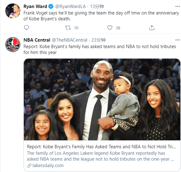 再过一天就是科比逝世一周年,湖人主帅沃格尔表示将在科比逝世周年日给全队放假一天,沃帅直言:这是一个更阴沉的日子,所以我要给我们的球员放假一天,让他们自己管理这特殊的一天。