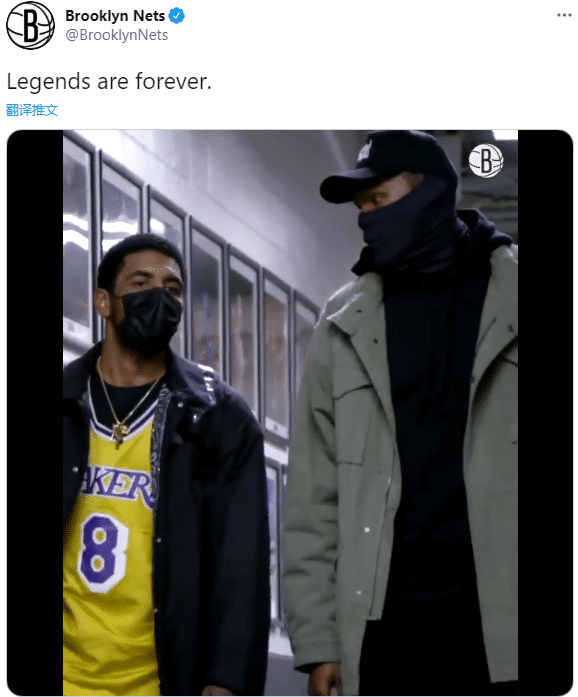 科比逝世一周年将近,欧文致敬科比又让人泪目,篮网官方还晒出欧文身穿科比8号,和杜兰特(戴着哈登同款的超大口罩)一起在球馆里的画面,并且写道:传奇是永恒的。