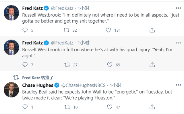 比尔则在赛后主动揽责,他表示自己上半场打得太差了:“我上半场打得太烂了,我只是想找回我的节奏。我要变得更好,不再失误,命中更多投篮,就是变得更好。”不过这场比赛,比尔的发挥已经尽力了,31分7板4助,他在场上时球队只输了2分。接下来,奇才需要耐心等待球员的陆续回归,正如比尔所说,他们这个赛季经历的,实在太奇怪了。