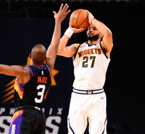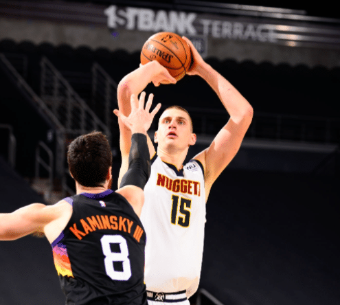 下半场比赛开始,双方的进攻效率下降明显,双方战成15-16,末节比赛比赛仍然非常胶着,保罗在本节命中4记中距离贡献8分,太阳一度接近胜利,但是最后时刻,穆雷命中飘移三分,帮助球队打进加时赛,加时赛中艾顿六犯下场,掘金获得3分领先,最后时刻,克劳德命中关键三分,帮助球队打进第二个加时赛。掘金打出一波5-0,随后保罗命中中距离,约基奇中投得手,随后勾手命中,穆雷中投得手,最终掘金成功赢下了比赛