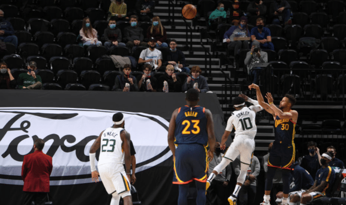 湖人和快船杠上了,卫冕冠军前天西部第一的位置还没坐热,快船昨天立马反超,湖人今天再夺回第一!照目前两队的火热状态来看,这样的情况可能还会持续一段时间。当然,目前西部最让人刮目相看的还是爵士,虽然今天库里迎来里程碑,生涯总三分命中数超越雷吉米勒升到历史第二,可勇士最多一度落后到40分惨不忍睹。爵士最近外线实在太准了,今天又命中了足足20记三分!