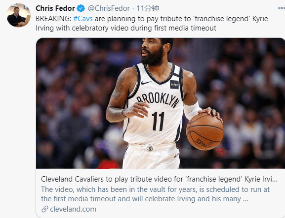 由于海沃德惨遭重大伤病,骑士临时决定取消为欧文播放致敬视频,再加上最近几年,欧文错过了多场重返克利夫兰的比赛,因此骑士无法在主场向欧文致敬;如今欧文将身披篮网11号战袍,享受老东家给予的特殊待遇。