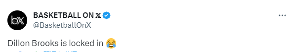 在火箭客场对阵快船赛前,狄龙-布鲁克斯站在球场上一动不动,凝视对手很久,美媒BASKETBALL ON