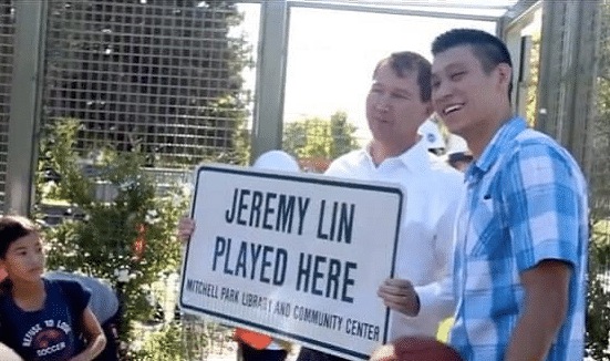 林书豪这是在重走青春路,这个球场和他也有很大的关联,在8年前的2013年9月份,林书豪参加Palo Alto 市Mitchell Park新建篮球场启用仪式,当时书豪和市长、小朋友们一起打球,所以就有了这样一个“Jeremy Lin Played Here ”的看板挂在这球场。不得不说这座城市对于林书豪还是很热爱的,而林书豪也用这样的方式来回馈这座城市。
