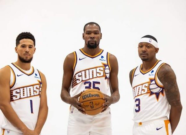 值得一提的是,在篮网的那个赛季,球队名义上也拥有三巨头杜兰特+欧文+哈登。但当时欧文场外惹事不断,哈登则经常出现伤病,三巨头合体的数字仅有20余场。最终,篮网三巨头分崩离析。如今太阳三巨头虽然少了场外事件,但伤病却成为阻碍他们的最大拦路虎。