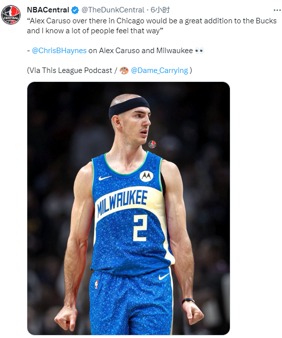 名记Chris Haynes在播客节目中谈到公牛球员卡鲁索,他表示:为芝加哥公牛队效力的卡鲁索对雄鹿来说会是极佳的补充,并且我知道很多人都这么想。