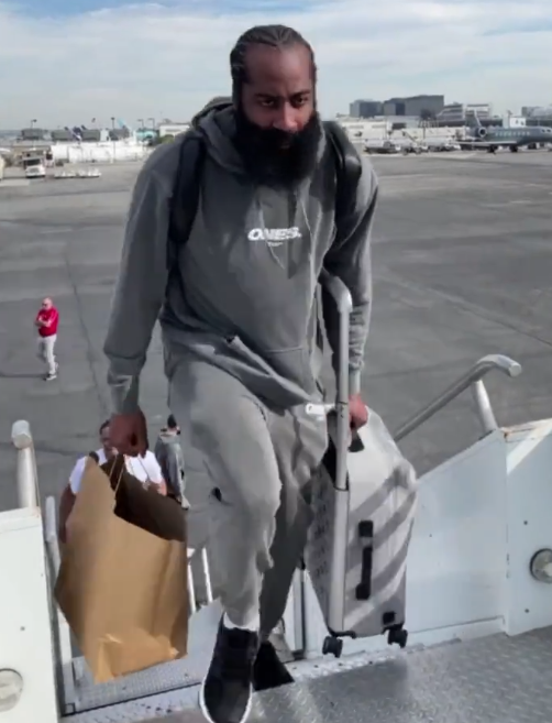 目前快船众将已经乘坐飞机飞往丹佛,他们将挑战卫冕冠军掘金,小卡面无表情,哈登提着大包小包,登机时表情严肃;威少身穿白色T恤,一路小跑着登上飞机,而且面带微笑,整个人的心情很放松。