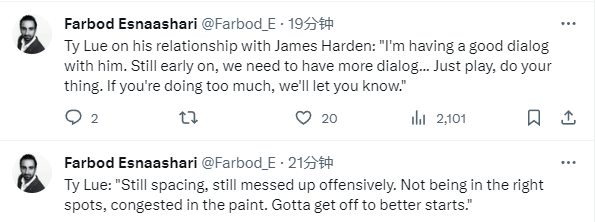 赛后谈到哈登的表现,泰伦-卢表示:哈登打得‘太客气,太有礼貌’了,他得更积极、更有侵略性一些,打得更自我、自私一些。多打挡拆,不要担心融入的问题。