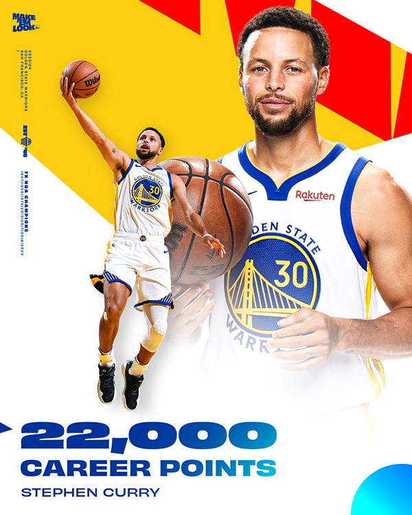 4、库里生涯总得分突破22000分,成为NBA历史第35位22000分先生