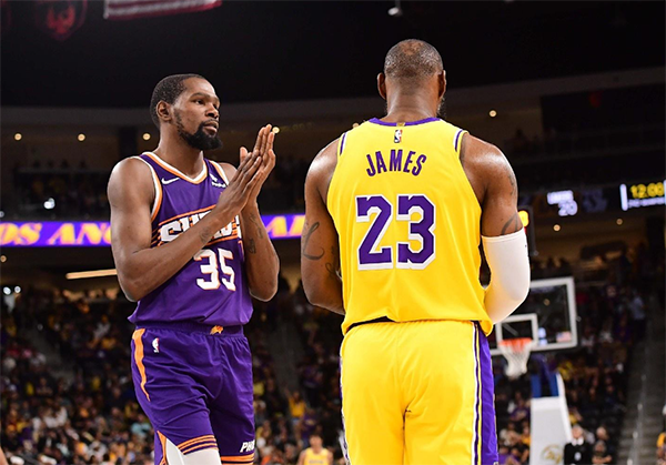 时隔15天再对决!詹姆斯帅气入场一脸严肃 杜兰特戴小红帽太抢镜