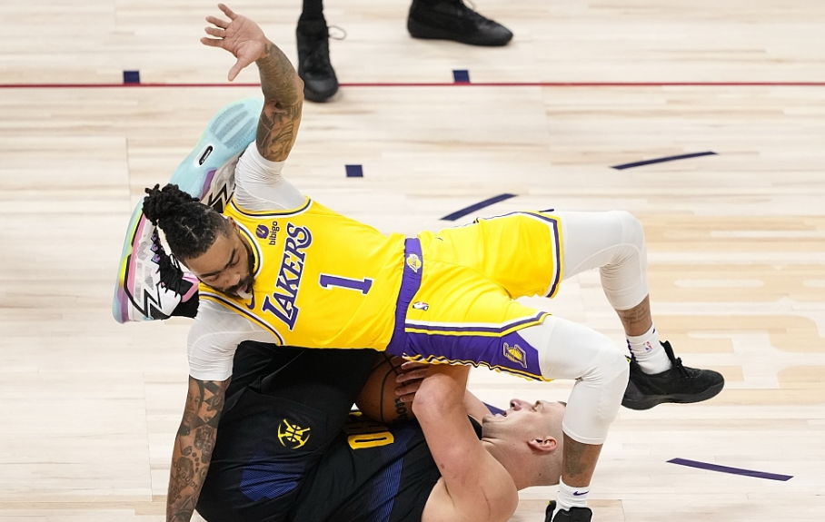 比赛最后1分钟,詹姆斯突破上篮,穆雷迎着老詹急停中投扳平比分,詹姆斯晃倒波普后错失制胜三分,穆雷推进并且迎着浓眉命中压哨绝杀,掘金全队疯狂庆祝,浓眉摔倒在掘金替补席,拉塞尔主动过去拉起浓眉,詹姆斯十分沮丧,满眼落寞黯然离场。