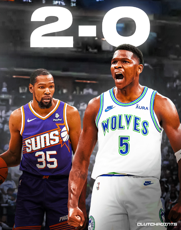 G1和G2两场比赛,太阳总共狂输37分,G2输球的重要原因是三巨头集体低迷,45投18中狂打27铁,出现12次失误,而且三巨头正负值合计-59;太阳多次出现进攻断电的情况,第三节4-17被反超,末节开场5-15被拉开分差,沃格尔早早用完最后一个暂停,三巨头提前2分17秒认输,森林狼球迷高呼4-0横扫太阳。