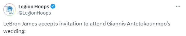 字母哥和他的未婚妻玛利亚的婚礼定于8月31日(当地时间)举办,詹姆斯受邀将会参加,据报道,预计参加字母哥婚礼的宾客人数会很多,勒布朗-詹姆斯已经接受了邀请,他将前往希腊参加字母哥的婚礼。詹姆斯很可能带着萨瓦娜一起前往希腊,参加婚礼的同时享受希腊的美景。