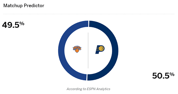现在的尼克斯已经伤不起了,布伦森G2带伤带队逆转取胜,你觉得他该轮休一场吗?根据赛场,两队G3将在明天上午7点开打,ESPN预测本场比赛的胜率,尼克斯49.5%,步行者50.5%,若尼克斯再次取胜,他们将3-0夺得赛点。