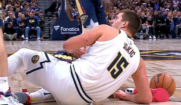 下半场局势风云突变,掘金单节40-21狂赢19分扭转局面,从落后两位数到反超比分,掘金仅仅只用了一节,约基奇单节7分5篮板2助攻,连续2场只差1次助攻三双后,约基奇终于再次拿到三双;值得一提的是,第三节约基奇倒地抢球时不慎压伤琼斯的脚踝,所幸后者的伤势无大碍,回更衣室检查后重返替补席。