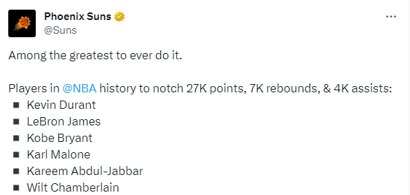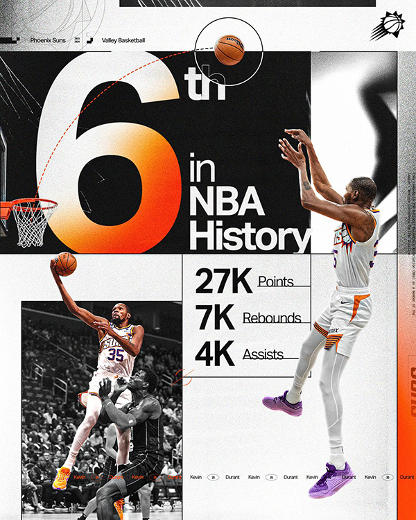 太阳官方盛赞杜兰特:历史最伟大的球员之一。