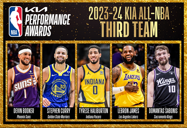 最佳三阵:詹姆斯、小萨、库里、布克和哈利伯顿