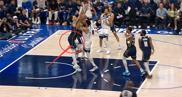 第二节,莱夫利在防守唐斯时被唐斯提膝踢到裆部,捂着裆部痛苦倒地,独行侠挑战失败,裁判维持莱夫利防守犯规,唐斯获得罚球;唐斯袭裆动作未吃到恶意犯规引争议。
