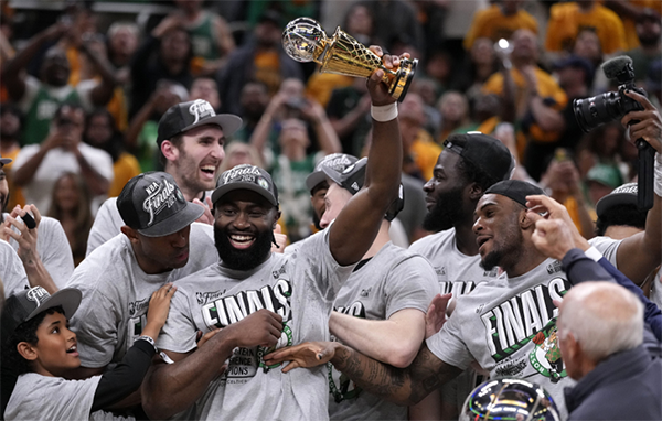 今年季后赛至今,凯尔特人首轮4-1淘汰热火,东部半决赛4-1淘汰骑士,东决4-0横扫步行者,夺得东部冠军后,塔图姆直接把球扔向空中,并且与队友撞胸庆祝;绿军众将开怀庆祝杀进总决赛,步行者众将则是黯然离场。