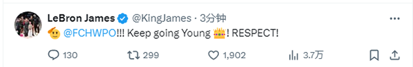 湖人球星詹姆斯发推祝贺布朗:向布朗致敬!!!继续加油,年轻的国王!