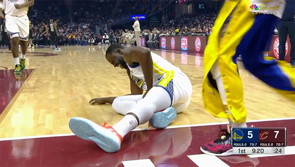 第一节勇士和骑士疯狂对攻,库里首节上场9分钟命中3记三分球,再加上外线造犯规三罚两中,单节5中3拿到11分,追梦格林的手感也不错,开场命中三分,首节贡献8分,值得一提的是,比赛期间,追梦在抢篮板时被阿伦踢到关键部位,捂着裆部痛苦倒地。