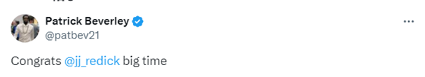 贝弗利提前祝贺,发推写道:恭喜雷迪克,重大时刻。
