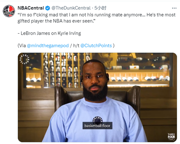 谈到欧文时,詹姆斯表示:我一直认为欧文是一个奇才,他在场上无所不能。坐在这里看比赛,看着欧文不断成长,我真的非常高兴和自豪。但与此同时,我又特么的如此生气和懊恼,气我不再是他的搭档了,我永远怀念那段时光。