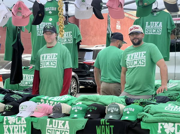 欧文抱着篮球入场,据悉他是第一个来到球馆进行热身的球员,欧文遭遇漫天嘘声以及谩骂和嘲讽,今日绿军球迷在球馆外摆烂售卖“东契奇垃圾”“欧文垃圾”的嘲讽T恤,更有球迷带着欧文版充气娃娃来到球馆外,集体狂骂欧文,甚至把欧文充气娃娃扔来扔去以及殴打它。