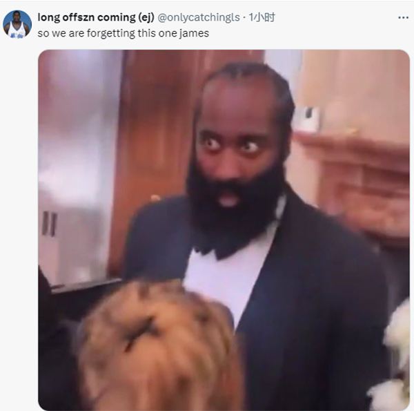 这是哈登在意大利参加隆多婚礼时所穿的服饰,在婚礼现场,哈登现任女友杰西卡-简舍尔抢到传递幸福的手捧花,哈登瞪大双眼的吃惊表情引热议,很多球迷调侃哈登恐婚;今日哈登发推后,有球迷调侃手捧花警告,还有球迷表示:兄弟,该轮到你结婚了。
