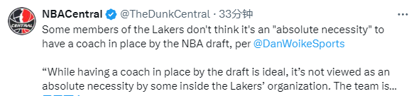 湖人报价6年7000万美元被赫尔利拒绝后,woj报道,湖人将在本周正式面试雷迪克;对于湖人选帅,Dan Woike报道称,虽然选秀前确定主帅是最理想的,但湖人内部有些人认为,没有必要在选秀前确定球队主帅。湖人将在今年夏天面临阵容方面的重大决定,球队有可能打包三个首轮签进行交易(首轮17号新秀、2029年和2031年首轮签)