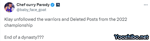 2022年勇士夺冠,库里全票夺得生涯第一座FMVP奖杯,夺冠后汤普森曾晒出在更衣室中与库里一起庆祝夺冠的合影,如今这条动态已经被汤普森删除;汤普森还取关了勇士官方账号。