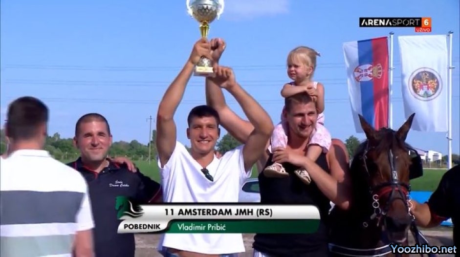 今日老鹰神射手博格丹-博格丹诺维奇与约基奇一起在松博尔赛马场参加赛马比赛,他们的马匹赢得冠军;在颁奖现场,约基奇示意工作人员把冠军奖杯颁给博格丹,后者高举奖杯庆祝,约基奇举起拳头一同庆贺。