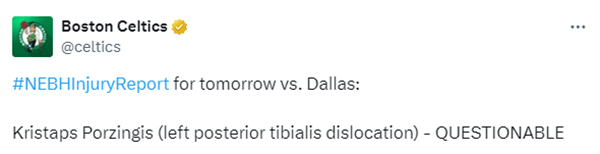 今日,凯尔特人和独行侠两队都积极备战总决赛第五场,波尔津吉斯参加训练并且被列为出战成疑,期间波津疑似模仿塔图姆投篮一幕引热议,美媒Basketball Forever调侃:他取笑塔图姆的投篮姿势(笑哭表情)。