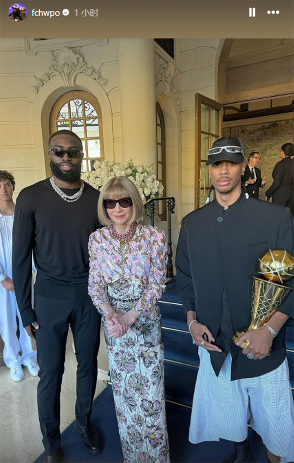 24直播网讯 北京时间6月24日,新科FMVP杰伦-布朗更换社媒头像,现身巴黎参加活动,满脸笑容太开心,并且与75岁时尚女王合影留念。