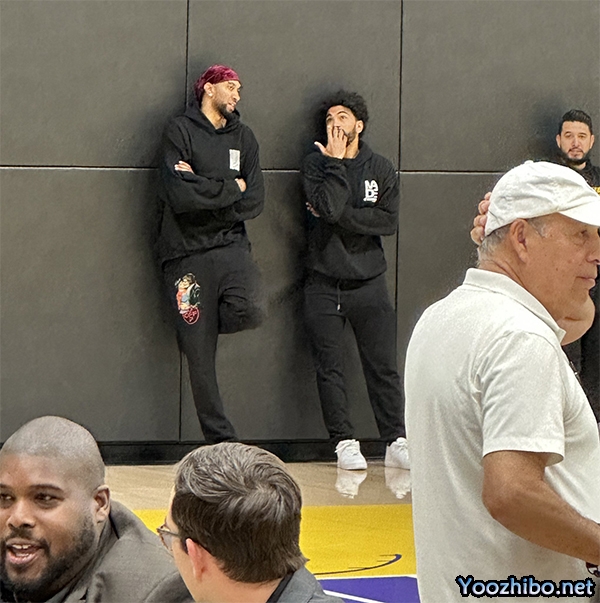 文森特和伍德来到湖人为雷迪克举办的发布会现场。