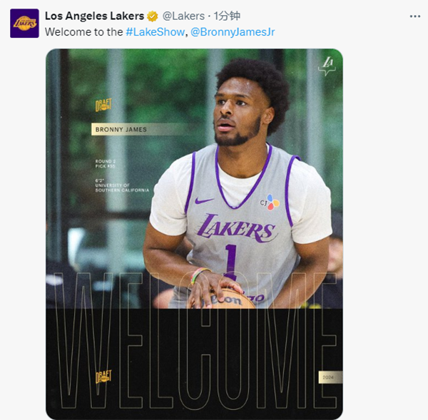 2024年NBA选秀:湖人选中布朗尼 众星祝贺