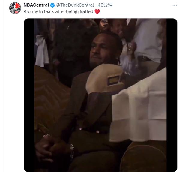 詹姆斯全家狂欢庆祝也曝光了——布朗尼被湖人选中后,詹姆斯的亲朋好友都鼓掌以及欢呼庆祝,老詹激动大喊;布朗尼情绪激动并且动情落泪,萨瓦娜把湖人帽子递给布朗尼,她擦拭眼泪也哭了。